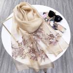 (米色)桑蠶絲刺繡薄款披肩圍巾