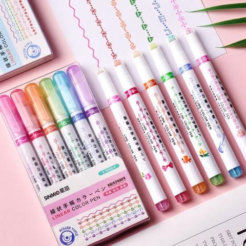 花型輪廓筆、曲線筆、彩色波浪筆、標記螢光筆、花邊筆、滾輪筆、學生文具、兒童手帳筆、DIY繪畫筆