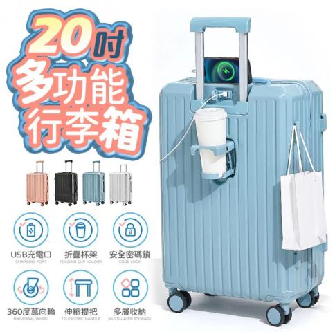特惠價!(天空藍)【FJ】20吋多功能USB充電行李箱 免運