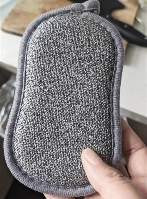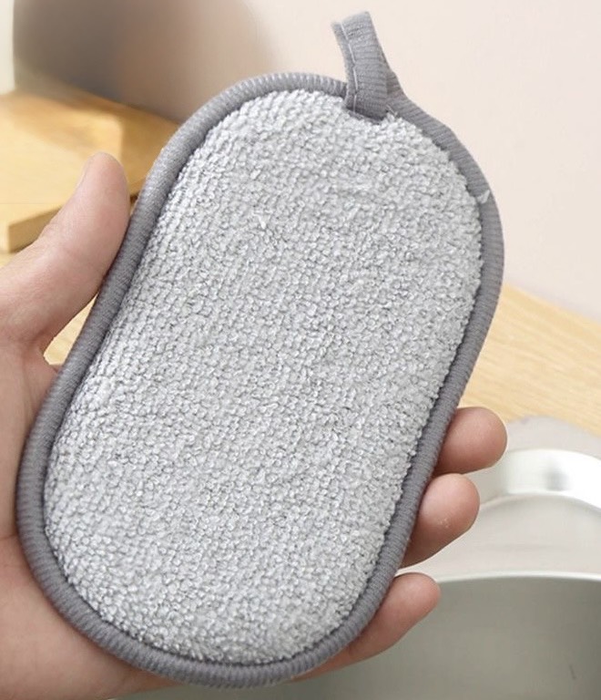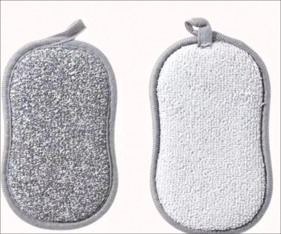 3. 雙面加厚材質:一面鋼絲強力去污、一面絨布柔和擦拭,乾濕兩用!