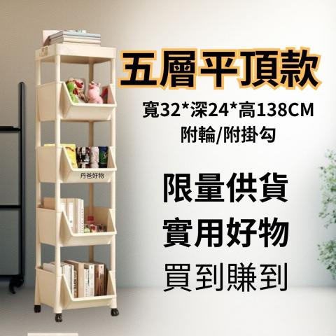 五層平頂/附輪/白色/直立式收納架|不佔空間.還能掛東掛西