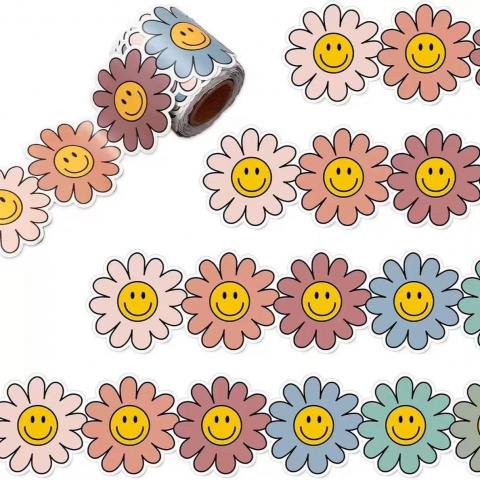 限量3(笑臉花朵)7.5CM/10米長 花朵裝飾膠帶貼紙