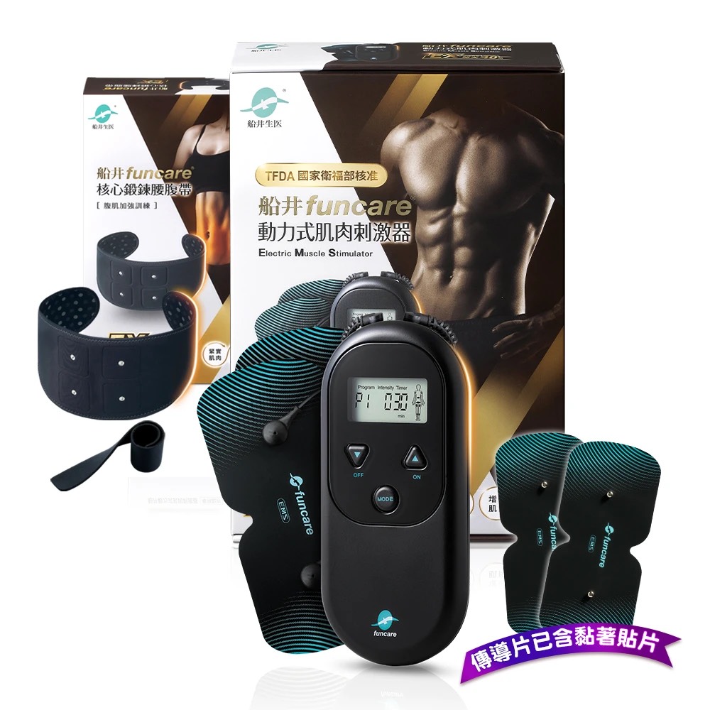 (許願品) 船井 動力式肌肉刺激器EX+核心鍛鍊腰腹帶EX+肌肉刺激器傳導片2片(方型5×5cm)X1 免運