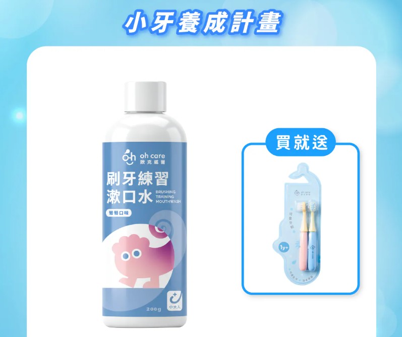 (葡萄/200g)oh care 歐克威爾刷牙練習漱口水+贈送兒童牙刷2入組.3歲以上可用