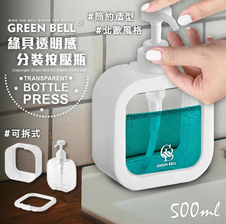 綠貝 透明感透明分裝按壓瓶500ml GBK-629