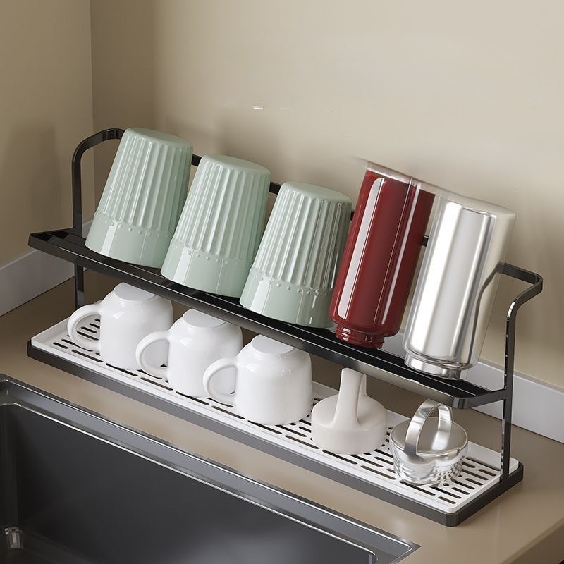 可收納多個杯子、保溫瓶、玻璃杯,是家庭必備的雙層杯架。